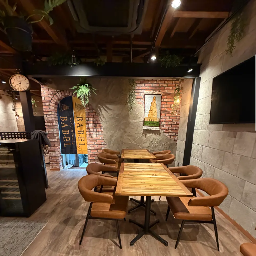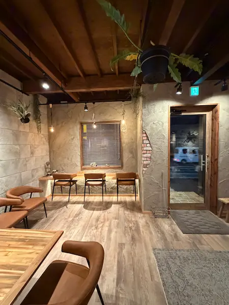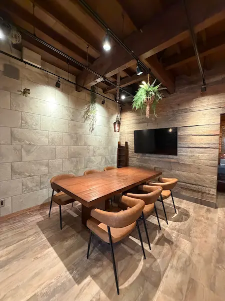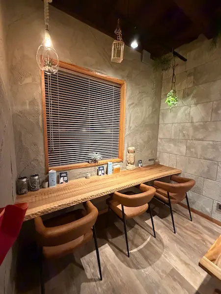 二人掛けテーブルが5席ずつあり、テーブルの組み合わせで2名席から10名席まで対応可能です。